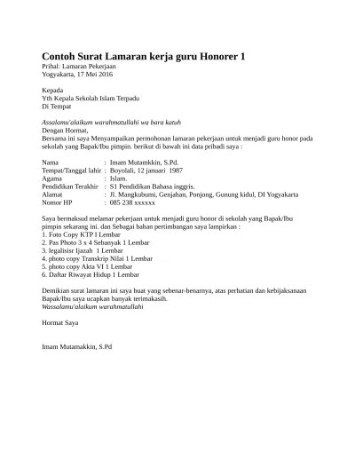 2032021 contoh surat permohonan perpanjangan sk honorer guru paud. 21 contoh surat izin sakit orang tua acara keramaian usaha. Lowongan kerja non pns dinas perhubungan besar besaran wilayah. Menulis surat lamaran kerja menjadi guru honorer. Terima kasih telah mengunjungi blog bagi contoh surat 2019. 96 contoh surat lamaran kerja bnn non pns. contoh surat perjanjian kontrak kerja guru paud format microsoft word. Inilah pembahasan selengkapnya mengenai contoh surat perpanjangan kontrak kerjasama antar perusahaan. contoh surat lamaran kerja guru kontrak daerah. 1322021 surat kontrak kerja mempunyai makna sebuah dokumen yang sah yang berisi perjanjian tertulis sesuai kesepakatan antara pihak perusahaan dengan karyawan. contoh surat lamaran kerja guru honorer. Maka jika anda ingin resign sebagai guru honorer, anda pun bisa menulis surat pengunduran diri guru seperti contoh di bawah ini. contoh surat rasmi pembayaran gaji kata kata surat tanda.